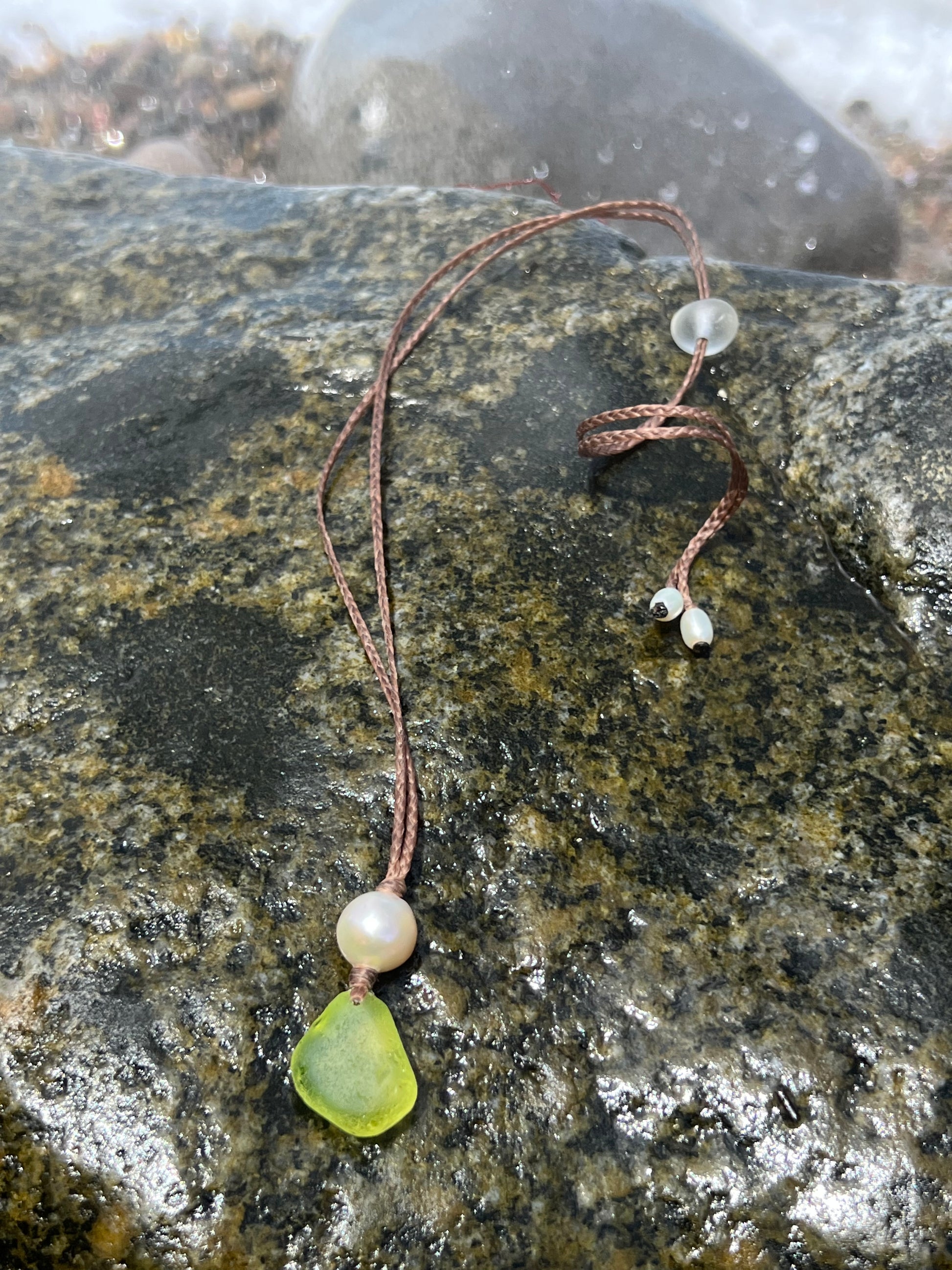 This incredible UV yellow sea glass necklace features a GLOWING piece I found on a remote beach in Northern California.