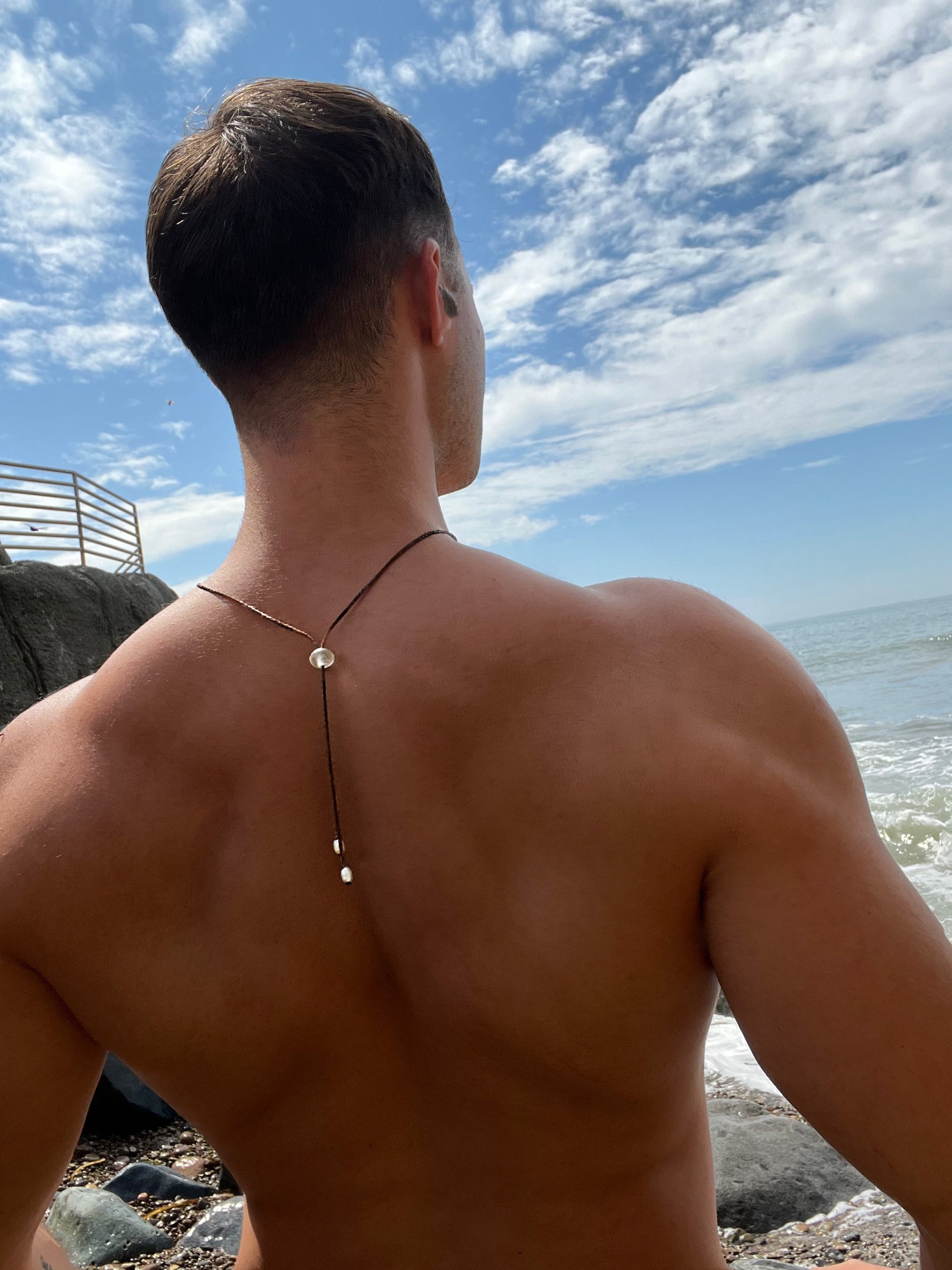 this piece is fully adjustable! The sliding clasp is a flawless bubble and it is finished off with tiny Japanese Akoya pearls!