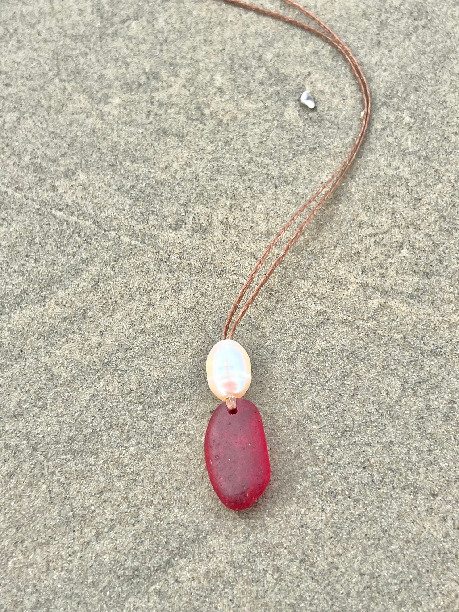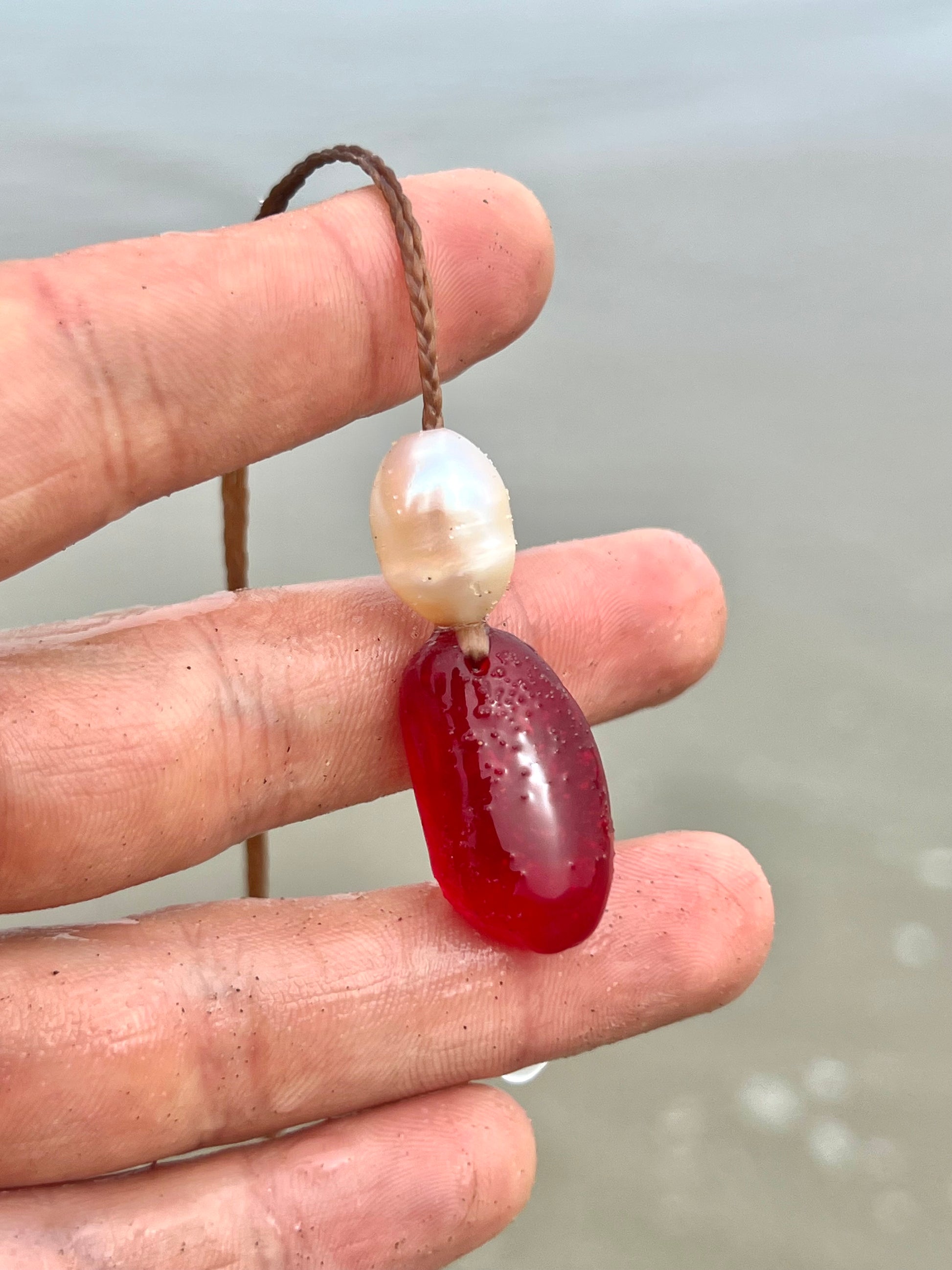 Because this piece is so rare, I wanted to keep the necklace simple to showcase the glass. I added a simple pearl and kept everything on my signature hand braided cordage.